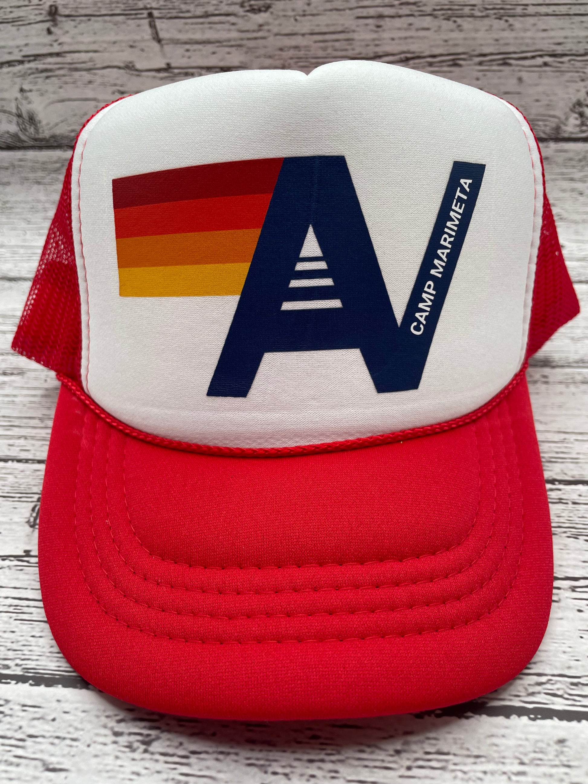 Aviator Nation-inspired logo for Camp Marimeta, popular girls overnight camp in Eagle River, Wisconsin.