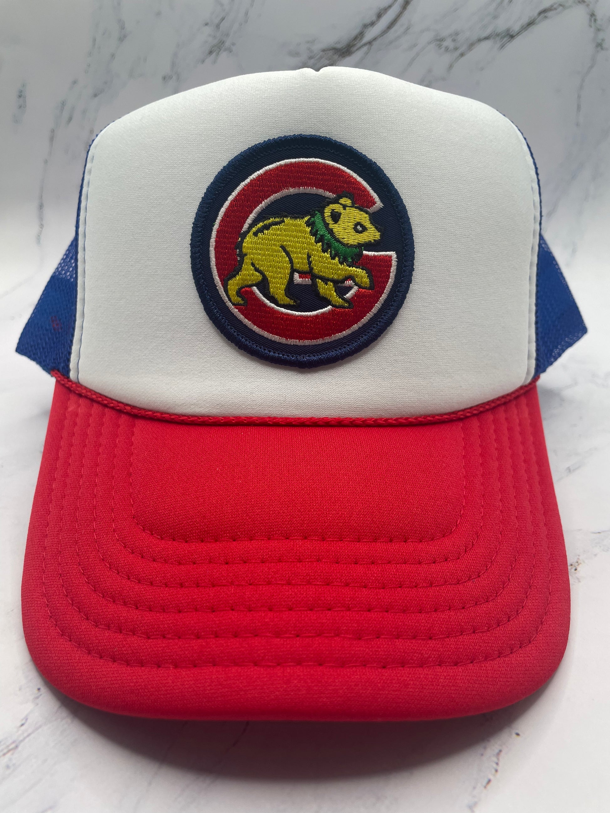 Limited edition Grateful Dead x Chicago Cubs patch on a red, white and blue foam trucker. See all color options.