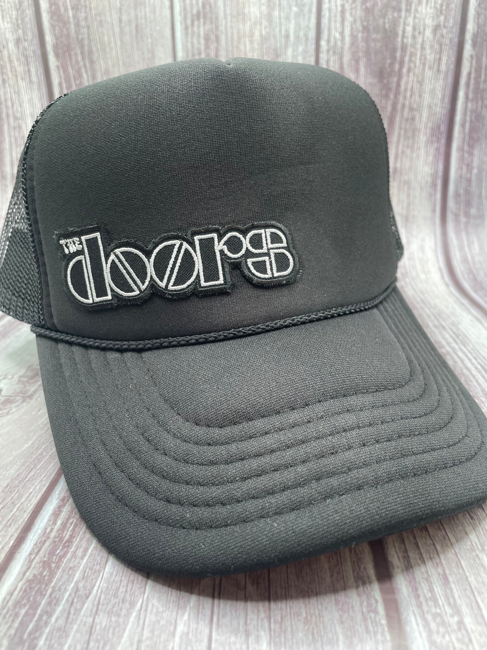 Embroidered Doors patch on a black foam trucker
