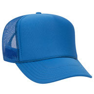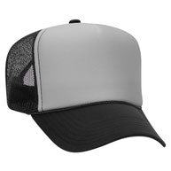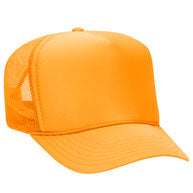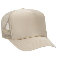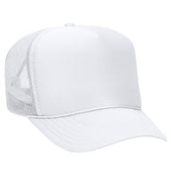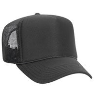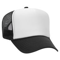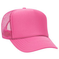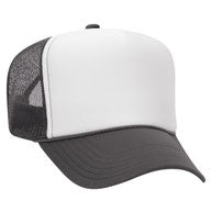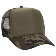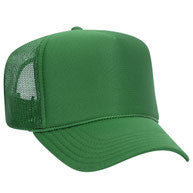Flocked vinyl on a dark green and white adult foam trucker hat.